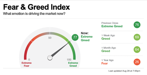 The market continues to move up. CNN's Fear and Greed indicator is reading greed.